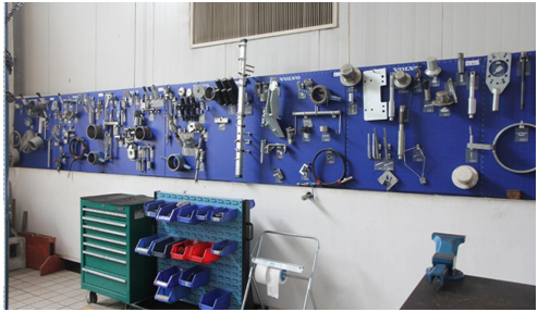 我國(guó)航空工業(yè)106所承擔(dān)著機(jī)載、彈載、艦載、車輛、地面雷達(dá)站等電磁窗產(chǎn)品設(shè)計(jì)、試驗(yàn)、測(cè)試、批生產(chǎn)及維修任務(wù),對(duì)車間管理要求比較嚴(yán)格。以前按照豐田5S管理的方法。如下圖車間有序管理工具及配件。